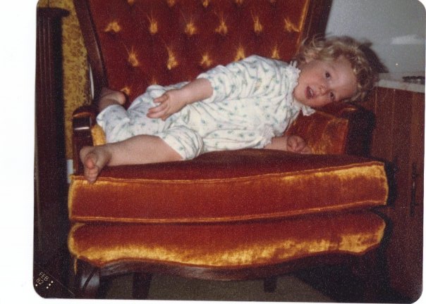 In your darling photos, I noticed that we had the same gold chair back in the day! 🙂