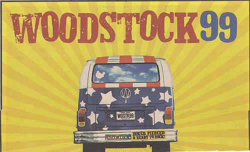 My best friend and I saw an endless amount of shows: Dave Matthews Band, Rage Against the Machine, Korn, Limp Bizkit, DMX, Jamiroquai, Jewel, Red Hot Chili Peppers—this is only scratching the surface. For $150, the heat and the high prices of food and water were totally worth it in my opinion. Vendors marked up prices because they could and I didn’t blame them. Tickets to concerts to see only one performer (maybe an opening act as well) can cost up to $100 a piece nowadays…$150 for a 3 day weekend of nonstop bands (popular amazing bands at that) was completely worth it to me. There was rioting and there were big blazing fires at the end and a lot of the news coverage blamed the high prices of food and water and people’s irritability but what they failed to mention is that the day before (Saturday) that they handed out candles to 250,000 people in plans of doing a Jimi Hendrix tribute. Maybe this is my own ignorance but if you hand out 250,000+ candles to concert goers that have been in the blazing sun for three days with very little sleep then you are ASKING for a fire. No, I do not condone what happened at Woodstock in regards to the fires and looting…I do think that there was not a lot of preparation and planning on behalf of the venue. I am not sure if they were truly prepared for that many people and I do not know if they had enough staff on standby if needed.