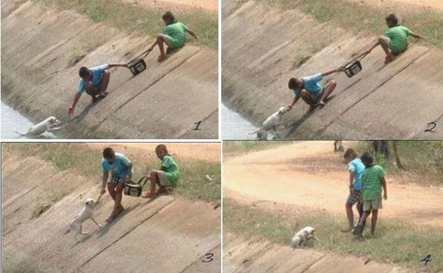13. These photos of two children collaborating to rescue a dog who had fallen into a ravine.