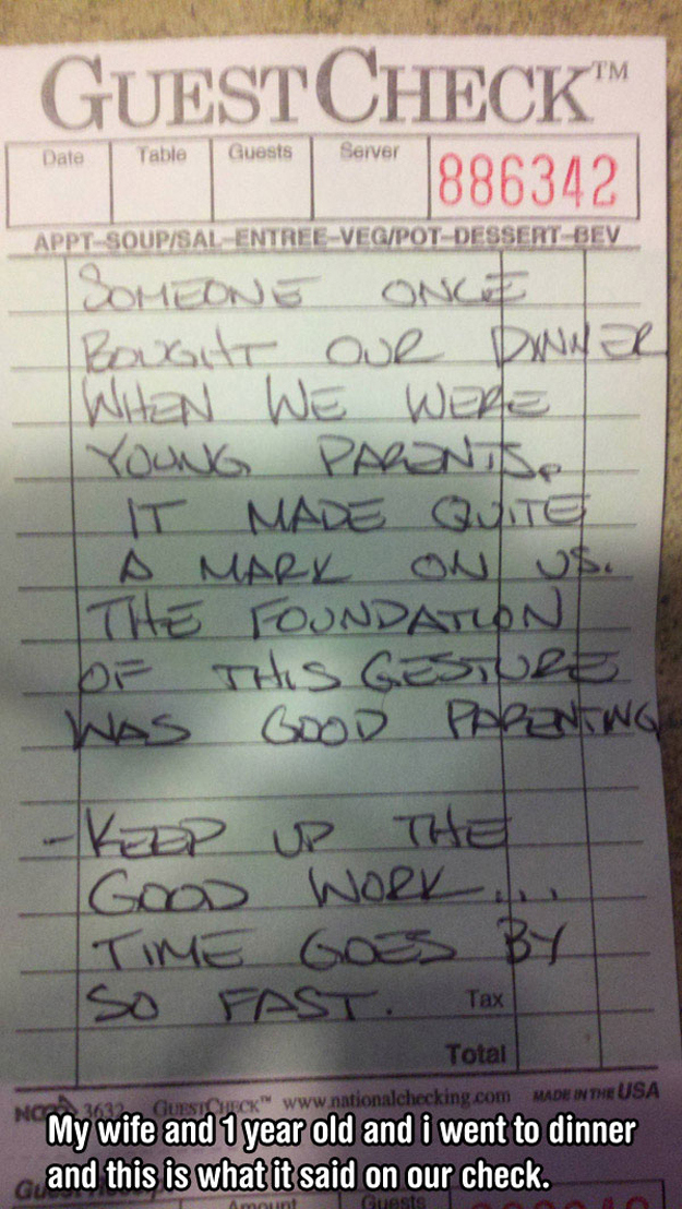 5. This note that was handed to a waiter along with a $20 bill by an elderly lady in his restaurant. (This is MY favorite)