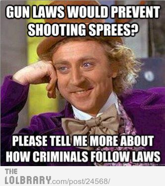 I know I go on rants about the government controlling people.  I also know I do not know the ins and outs of how the government works.  Some people bark at me and tell me that we need government to keep the control and that things are how they are so I should just accept it and just shut up.  I accept it but it doesn’t mean I have to like it.  When the government makes all of these rules and laws for the people (yes, I realize some are necessary in this day and age) it says (at least to me): We do not trust you to make a good or well thought out decision on your own so we are going to make it for you.  I realize that guns are extremely dangerous and I also realize that not every average Joe needs to be carrying one around but the people should have the right.  There are (necessary) hoops to be jumped through in order to obtain a weapons license and more hoops for actually purchasing the weapon.  I believe we just have to hope that people will make the right decisions when it comes to using a weapon.  It is inevitable that some will not but that is nothing that can be controlled no matter how hard we try (by taking away their ability to buy a weapon)….criminals will find a way to buy a gun or any weapon if they have a mission in mind and if it’s not a gun it will be some other form of weapon.